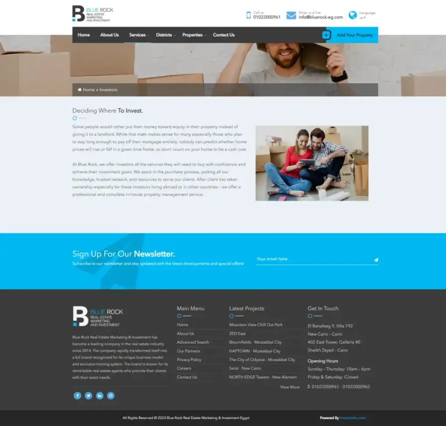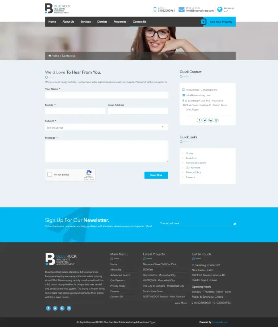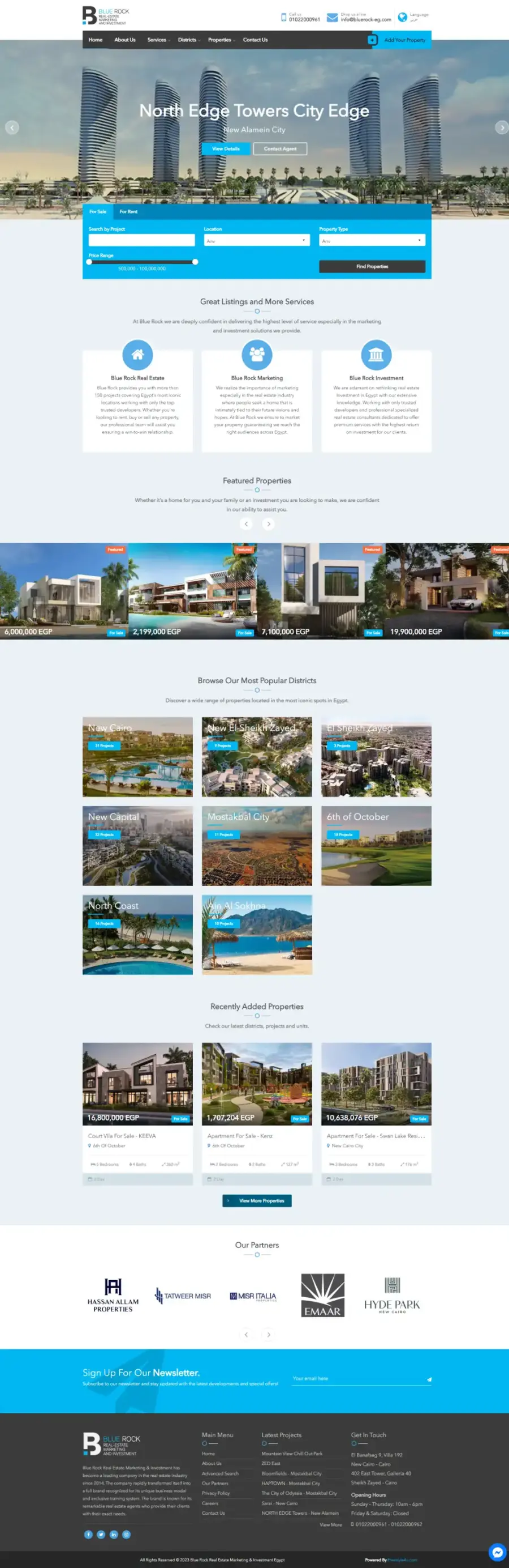 اختيارنا لـLaravel مكّن فريق بلو روك من إدارة المحتوى بسرعة وأمان، وتنظيم العروض العقارية بعناصر تصفية واضحة ومعارض صور، إلى جانب نماذج تواصل لالتقاط العملاء المحتملين وإرسال تنبيهات داخلية. كما ساعد التصميم الثنائي اللغة مع تحسينات SEO في تعزيز الحضور الرقمي وزيادة جودة الاستفسارات القادمة من الموقع.